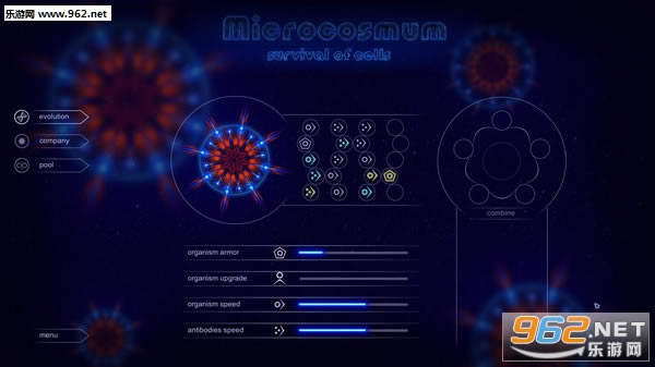 投入难以想象的并非常美丽的微生物世界.参加微观世界的自然选择.欣赏气氛音乐和美丽的世界.深深气氛和弛张的玩法使你投入游戏.不知约束的控制使你想出许多战略手腕.在生存竞争作为唯一的胜利者.