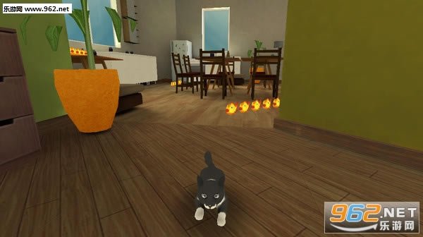 你将控制着小猫在房子里走来走去,在无聊的生活中寻找一些调剂品,做一些奇怪的事情来扰乱人类或者狗狗平静的生活..可能它的有趣点就在于捣乱和欺负别人吧..233.