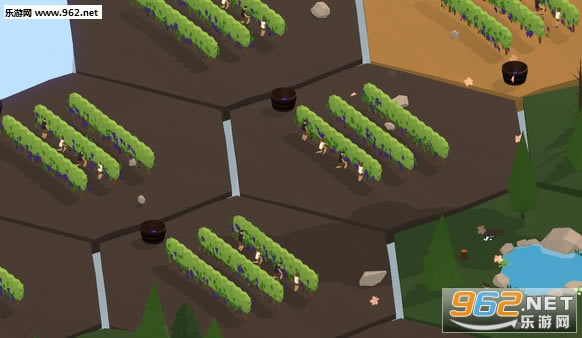 从一块土地开始,最终将你的庄园扩大到33块。你可使用6种不同区域选择,如森林、湖泊等,它们将对周围区域造成不同影响,因此需谨慎选择。