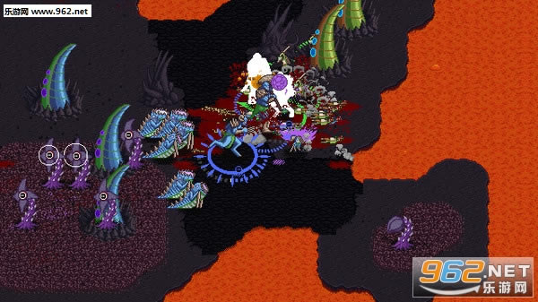 目前游戏中我们可以用到的法术也只有两个,召唤小兵与建立激光章鱼脚,同时我们本身也可以进行普攻,而且四个外形生物的技能与普攻除了动画贴图不同,效果都是一样的。