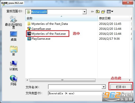 2、选中“Mysteries of the Past.exe”之后,点击右下角打开,进入图3