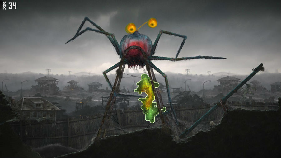 每一关结尾部分都有一场精心设计的Boss战。这些Boss有的是植物,有的是动物,有的看起来还像机器人。他们的招式也千奇百怪:喷火、导弹、践踏,可谓无所不用其极。不过这些Boss有个共同点:他们身上都有一个闪闪发光的小球。玩家只要让那坨翔触碰到Boss的弱点,就能给它造成伤害。Boss受到伤害时的反应也及其生动有趣。有个Boss是一只巨型蜘蛛,当它看着一大坨绿翔逐渐向它身上的弱点蠕动时,惊恐得眼睛瞳孔都放大了。当巨型蜘蛛被最终打败时,只有懊恼地蜷缩成一个椭圆形,慢慢地滚进岩浆里。