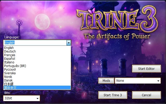 点击“Language”下拉里面的“简体中文”之后再点击右下角的“Start Trine 3”即可中文开始游戏