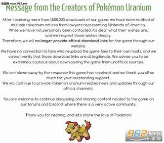 在短短几天时间里,《精灵宝可梦:铀》就收获了高达150多万的下载量,同时也从任天堂美国公司的律师那里收到了很多次的下架通知。因此,开发网站上将不再提供任何官方下载链接。