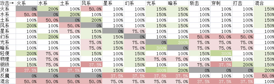 属性相克表