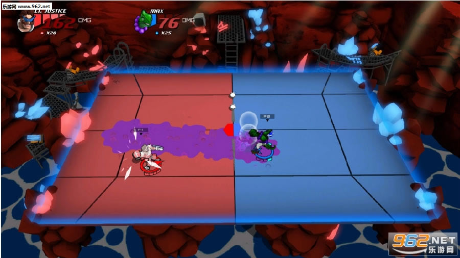 《星系闪电战》是一款第三人称的对抗型动作射击游戏。在这个竞技场中我们需要选择一名有着特殊技能的人物,与对方进行射击对抗,我们要做的就是将手中的球扔中对方击退他!只要他被打到擂台外面就算失败~是一款很有意思的游戏。
