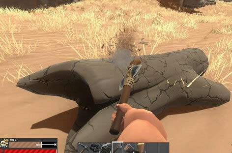 游戏的前期以资源收集为主。地上散落的石头和原木可供玩家制造前期的必备物品,比如石镐、石斧和基本矛。