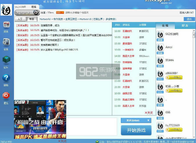 4、顺利进入专房之后,玩家会获得类似于“加入住房间:1380/0,ip:192.168.2.xxx(玩家建的主机不同IP地址不同,此处用XXX代替)”的提示