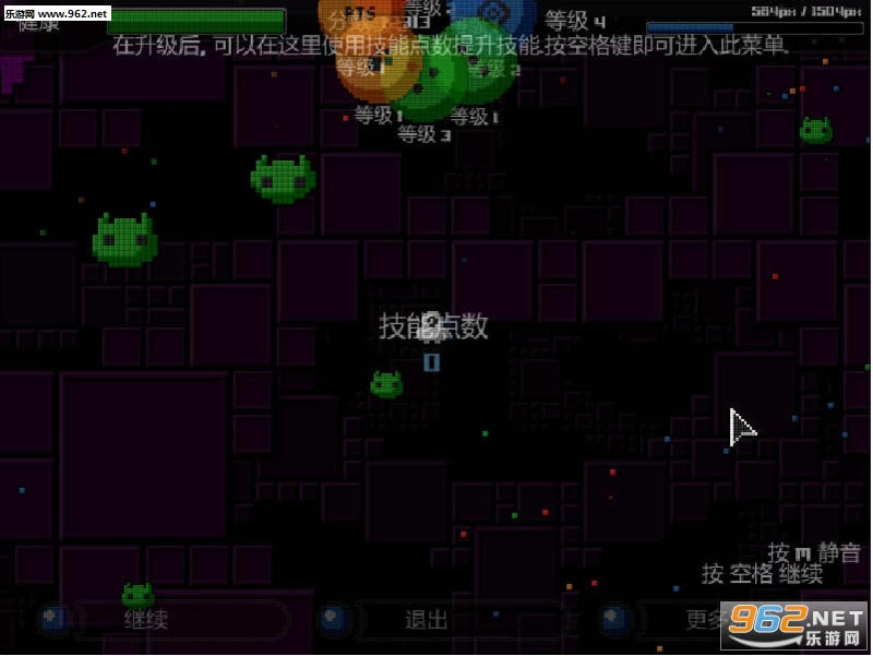《像素净化》是一款第三人称上帝视角的射击游戏。游戏的机制很简单并且没有太多的装饰,控制一个人物对周围涌出的幽灵点点点来干掉它们,并且在消灭掉敌方单位之后可以获得一定的经验值,升级后强化自身的属性~慢慢的RPG元素。
