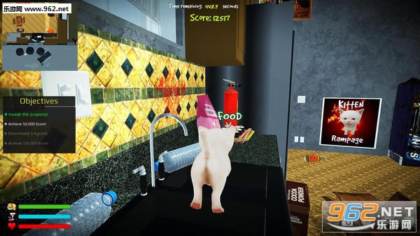 《小猫的狂暴(Kitten Rampage)》是一款第三人称的动作类休闲游戏。玩家在游戏中将控制可爱主猫翁并装备好了炸药和枪械,准备从人类和其他的敌人身上开始夺取这里的控制权!尽可能的破坏掉所有的东西!小心这只狂暴的小猫。