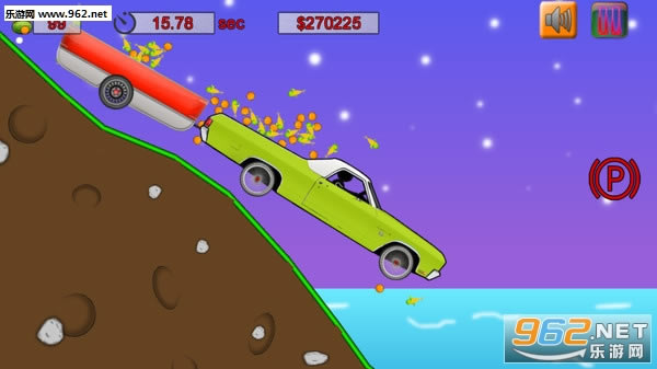 玩家需要控制一辆卡车,在丘陵地带驾驶,并在有限的时间内将卡车内的货物运送到目的地,保证你的路途中是安全的就可以了。你的目的是积累尽可能多的金币,在路上尽可能的不要洒落货物,这样你获得的金钱便可以用来升级车辆或者购买更加稳妥、速度更快的卡车。
