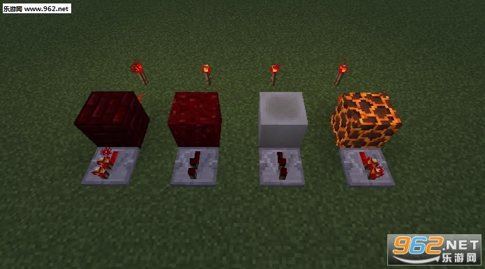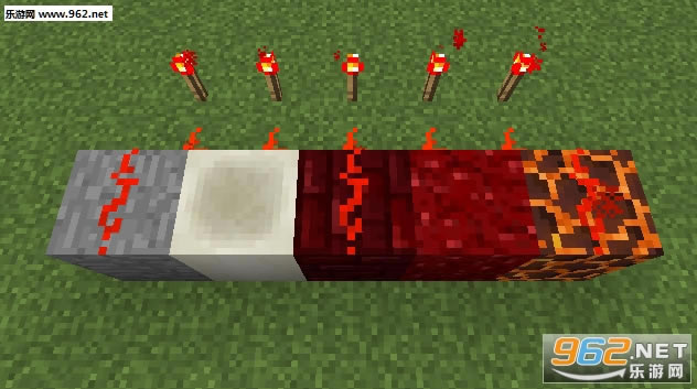 新加的方块中,骨头块、地狱疣块上无法放红石,也不会被红石充能。
