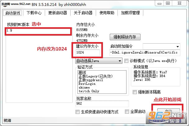 这次我的世界1.9.0启动器采用的是MCLauncherBN版的,玩家进游戏前需要进行简单的设置,具体操作方法如下: